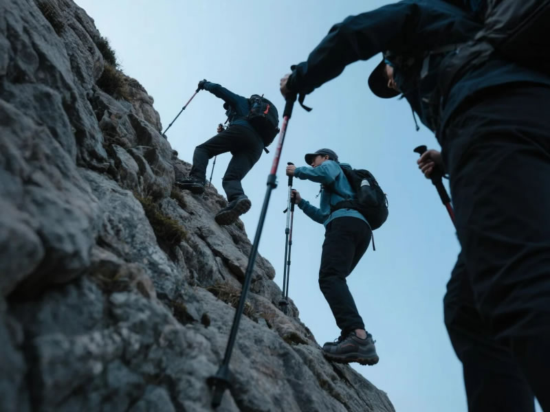 - The "Tripod" for Rest: Need to pause on a steep slope? Plant both poles securely in front of you and lean on them with straight arms. This creates a stable three-point stance (two poles + your feet), allowing you to rest, survey the route, or adjust gear without losing balance.