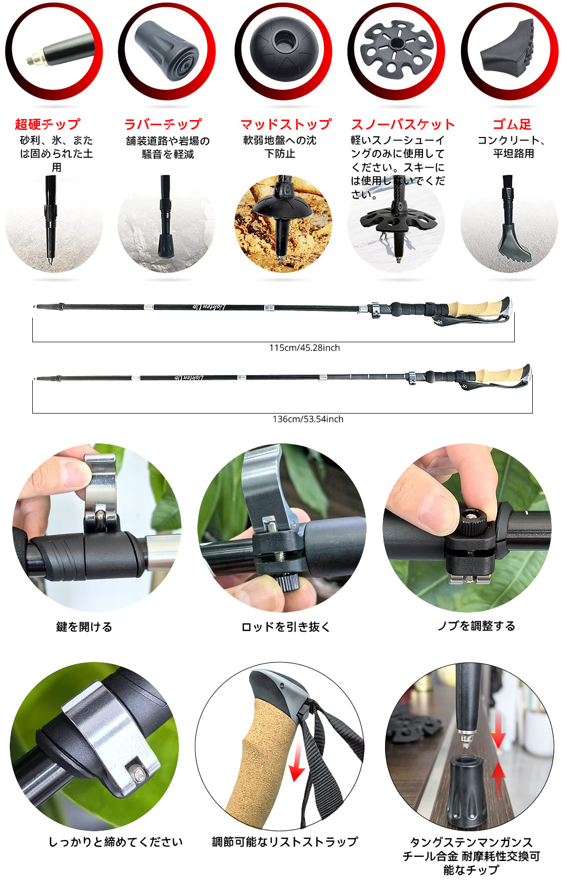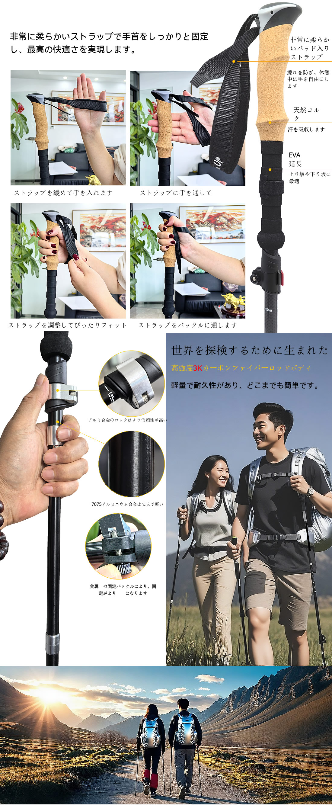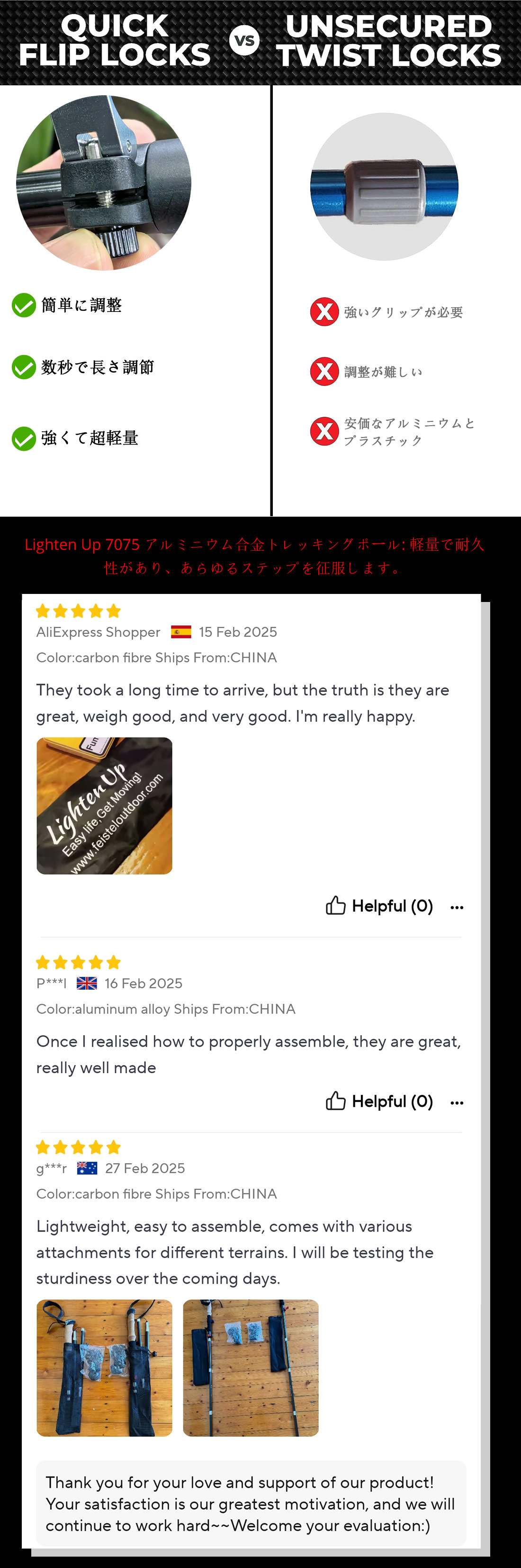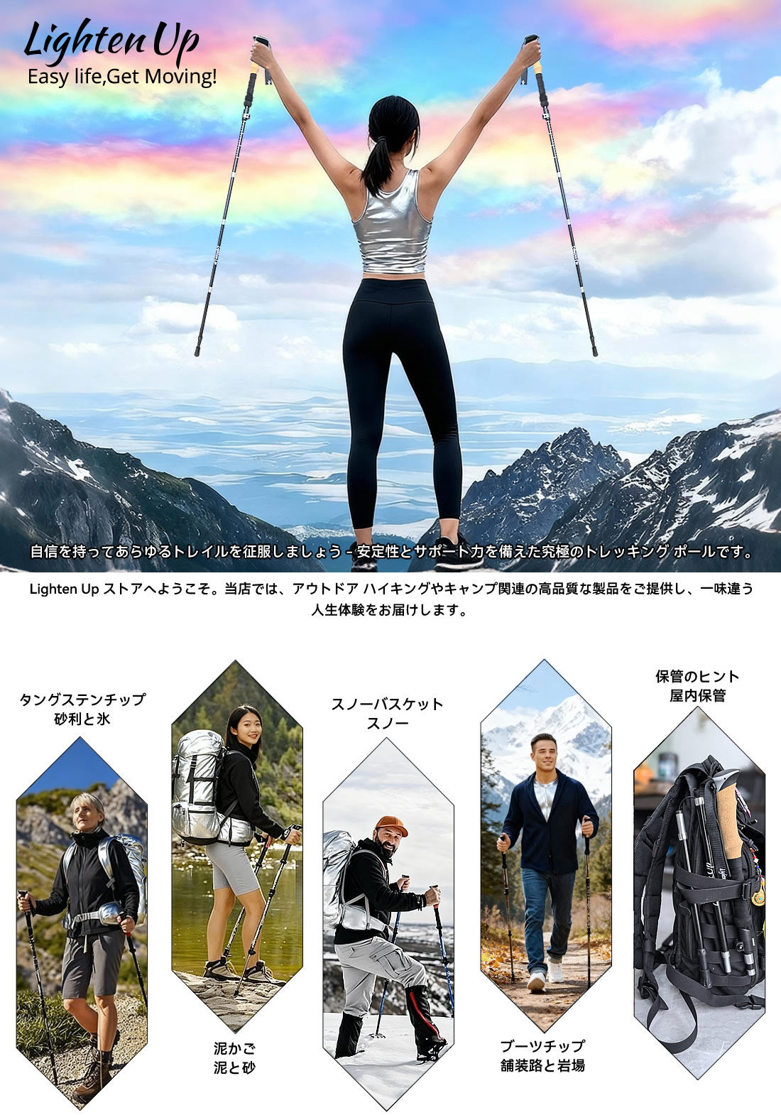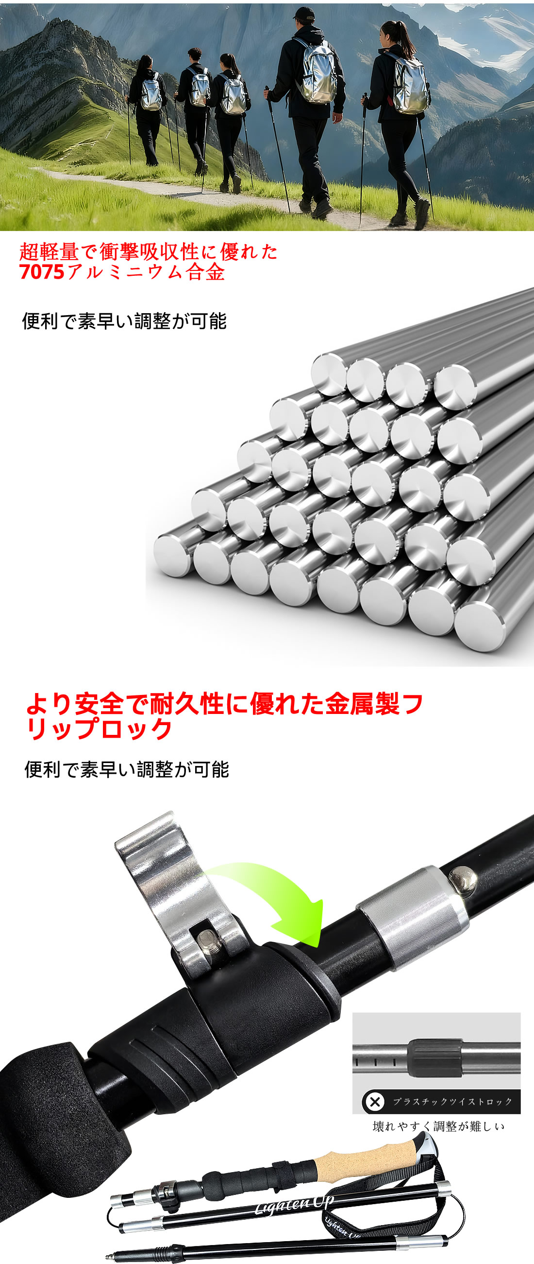 Lighten Up 7075 航空宇宙グレードのアルミニウム合金 105-125mm 折りたたみ式トレッキング ポール。