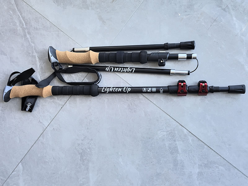 - Key Advantages:Infinite Adjustability: This is their superpower. Lever locks (e.g., FlickLock) or twist locks allow for millimeter-precise length adjustments. This is crucial for optimizing pole length on steep ascents (shorter poles), long descents (longer poles), or when walking on side slopes, reducing strain on your wrists and shoulders.Field Repairability and Versatility: A malfunctioning lock is often easier to diagnose and sometimes field-repair than a broken internal cord. You can also adjust the pole to a non-standard length for specific uses, like setting up a tent or tarp.Customizable Packed Length: While longer than folded Z-poles when fully collapsed, you can shorten them to a specific length to fit your backpack's attachment system.