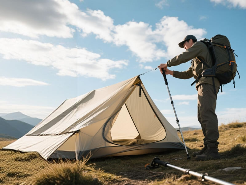- Trekking Pole Requirements: Not all poles work equally well:Adjustable Length: Telescopic poles are ideal as they allow you to fine-tune pitch height for different conditions and terrain.Adequate Height: Ensure your poles extend to the required height for your specific shelter, typically between 115-140cm.Tip Protection: Rubber tip covers or specially designed "paw" attachments prevent sharp carbide tips from damaging shelter floors.
