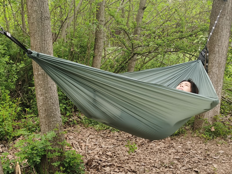 - Find the Sweet Spot: As you settle, you will feel the fabric widen and flatten beneath you. Your body should be almost perfectly horizontal, with the hammock material providing even support from head to toe. The sides of the hammock will curl up gently around you, creating a cozy, stable feeling.
