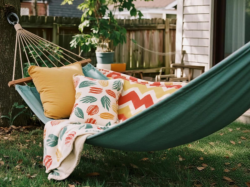 - All-Weather Cushions & Pillows: Use plush, quick-dry cushions on nearby seating and a durable pillow in the hammock itself. Choose colors and patterns that complement your outdoor palette.