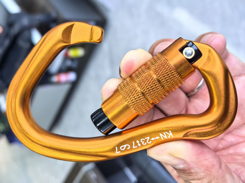 - The Rope-Side Carabiner:Design: Most often features a bent-gate or a wire-gate.Function: This is the carabiner through which the climbing rope is clipped. The bent gate creates a wider, funnel-like opening that makes inserting the rope faster, easier, and more intuitive during a strenuous lead climb.Key Trait: Speed and smooth action. The design prioritizes one-handed clipping efficiency.