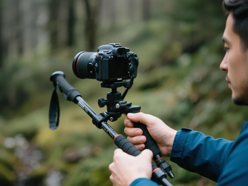 - Use the hiking pole monopod for quick, stabilized shots while moving.