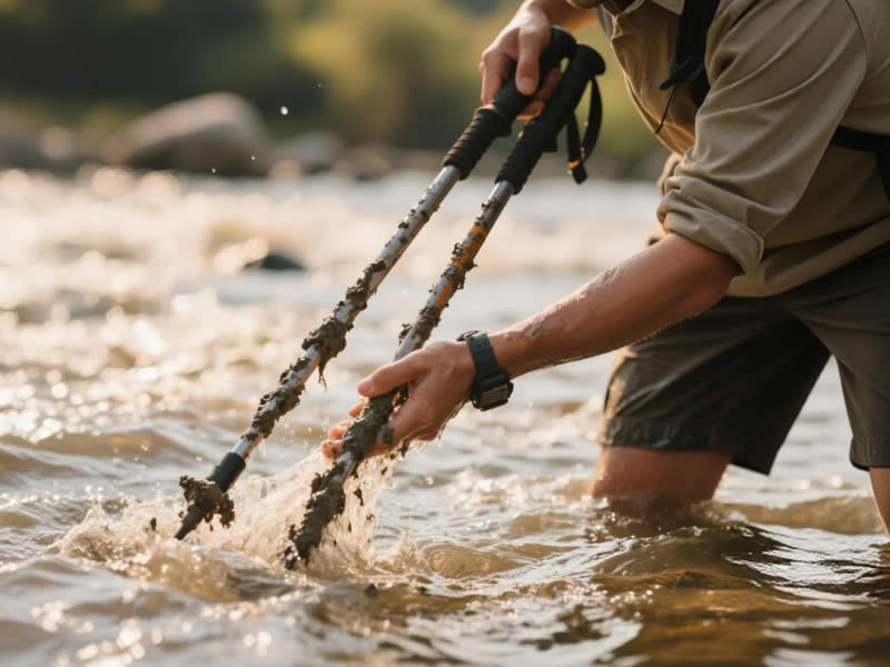 How to clean trekking poles after muddy hikes?
