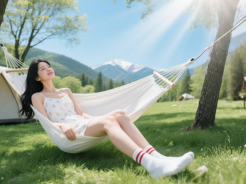 - Nylon Hammocks:Made from woven nylon fabric, often thicker (e.g., 70D–100D denier).May include coatings like silicone or polyurethane for water resistance.Prioritizes durability over weight savings.