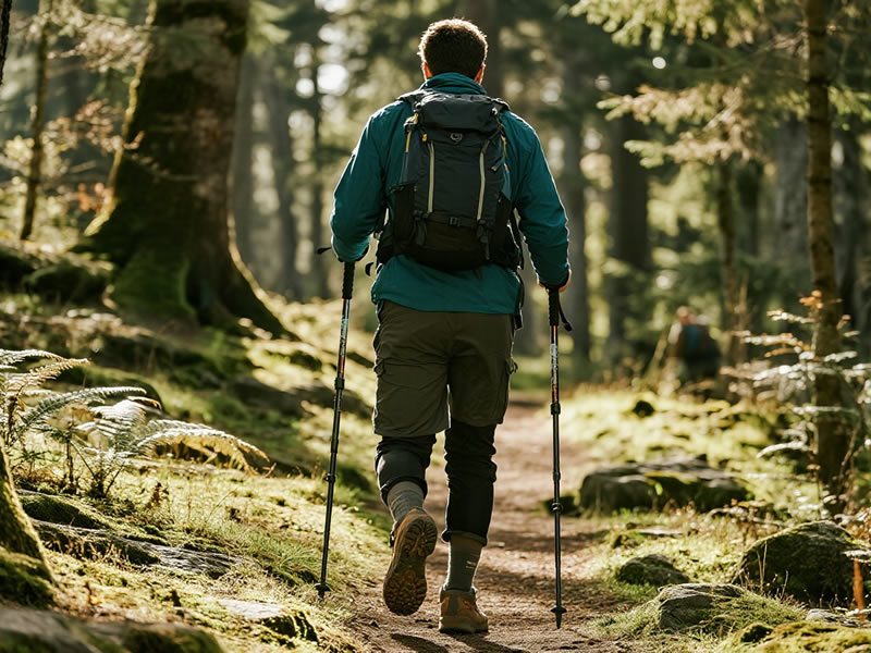 - Rhythm Syncing:Match pole plants to natural gait: Left pole → Right foot.On uneven ground, use "double planting" (both poles together) for extra support.