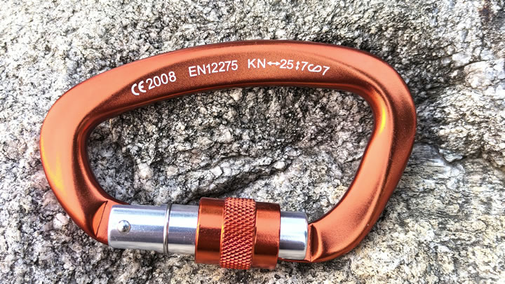 Heavy duty carabiner weight capacity kN rating.