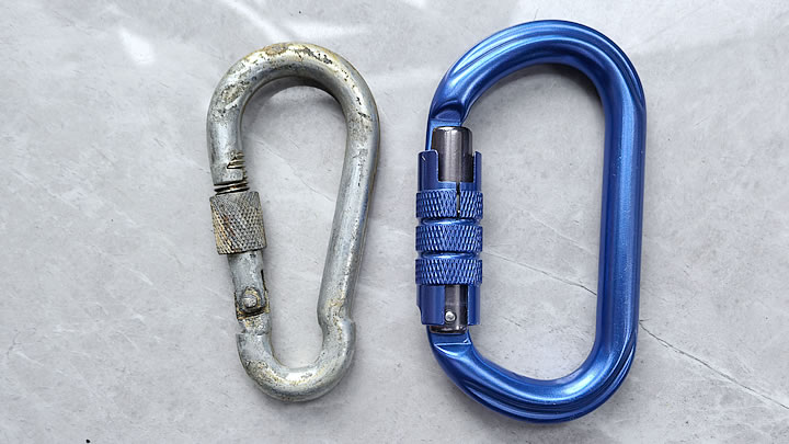 Heavy duty carabiner material: steel vs aluminum.