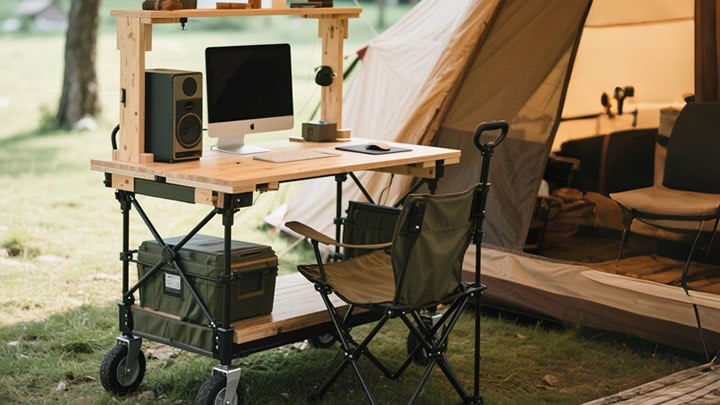 Camping table as a portable workstation