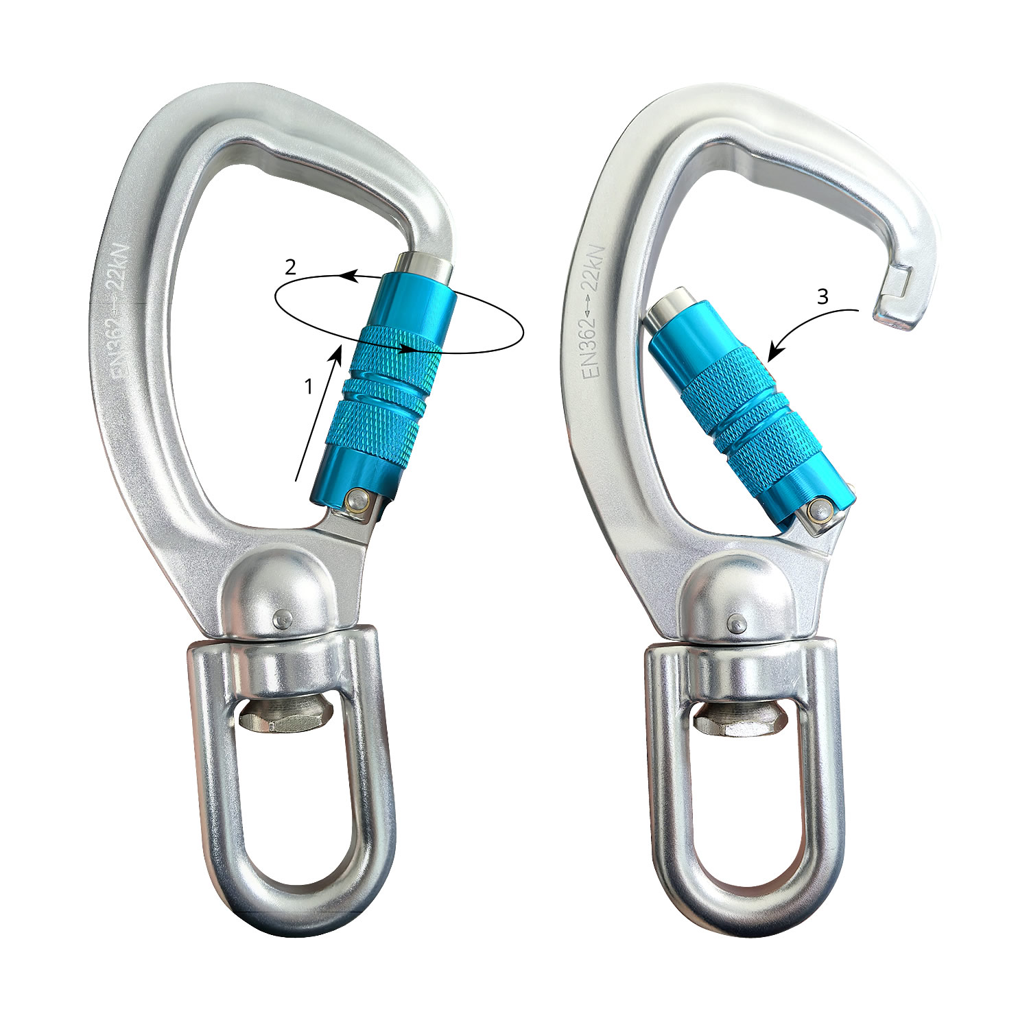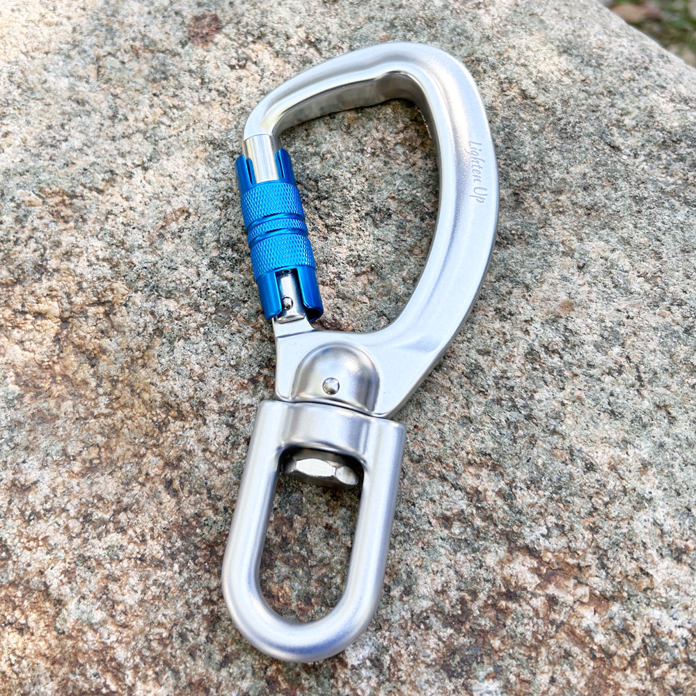 Crafted from high-strength aluminum alloy, this carabiner is both lightweight and robust, making it ideal for outdoor rock climbing, indoor gym use, hiking, and survival rescue missions. Its smooth 360° rotation allows for easy maneuverability, reducing friction and wear on ropes and equipment. The locking gate mechanism provides an extra layer of security, preventing accidental openings even under heavy loads.