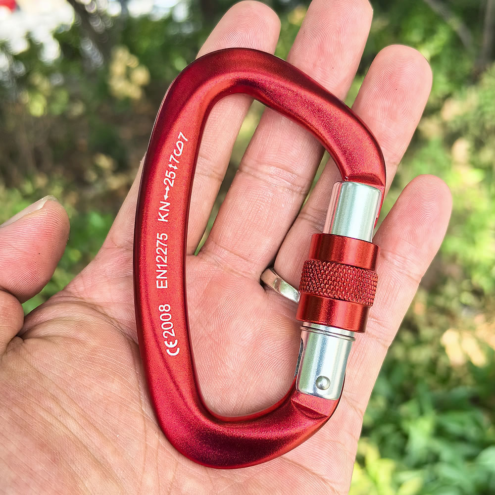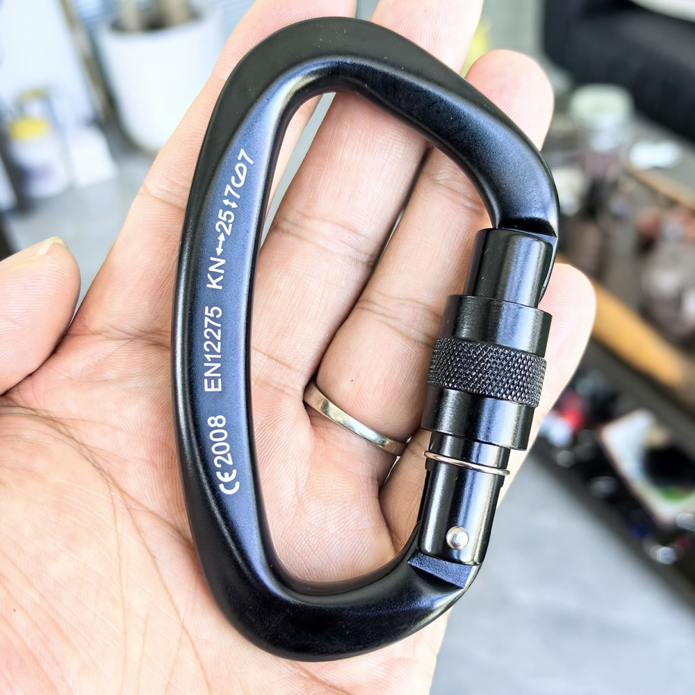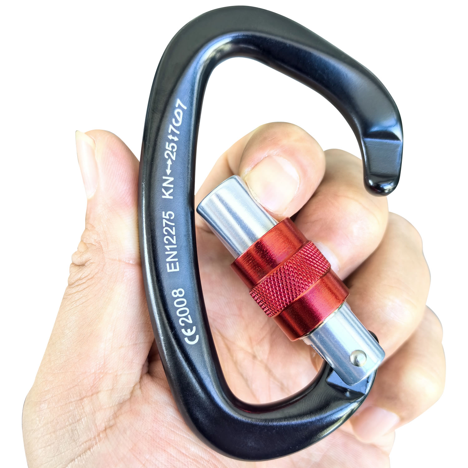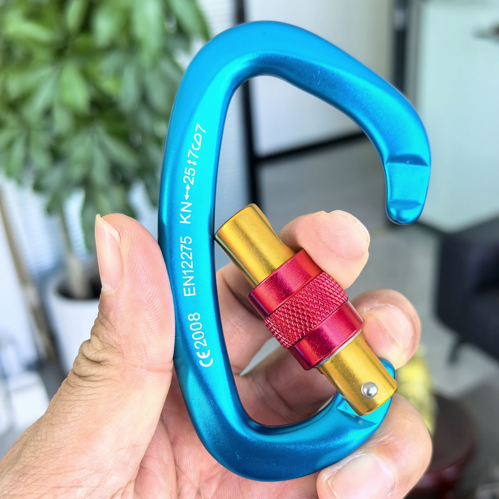 Our 25kN climbing carabiners are designed for outdoor enthusiasts and professionals who demand the highest level of safety and performance. Whether you're scaling cliffs, setting up camp, or embarking on a backpacking adventure, these carabiners provide unmatched strength, portability, and ease of use. The D-shaped design and rotating screw lock ensure secure connections, while the lightweight construction reduces fatigue during long trips.
