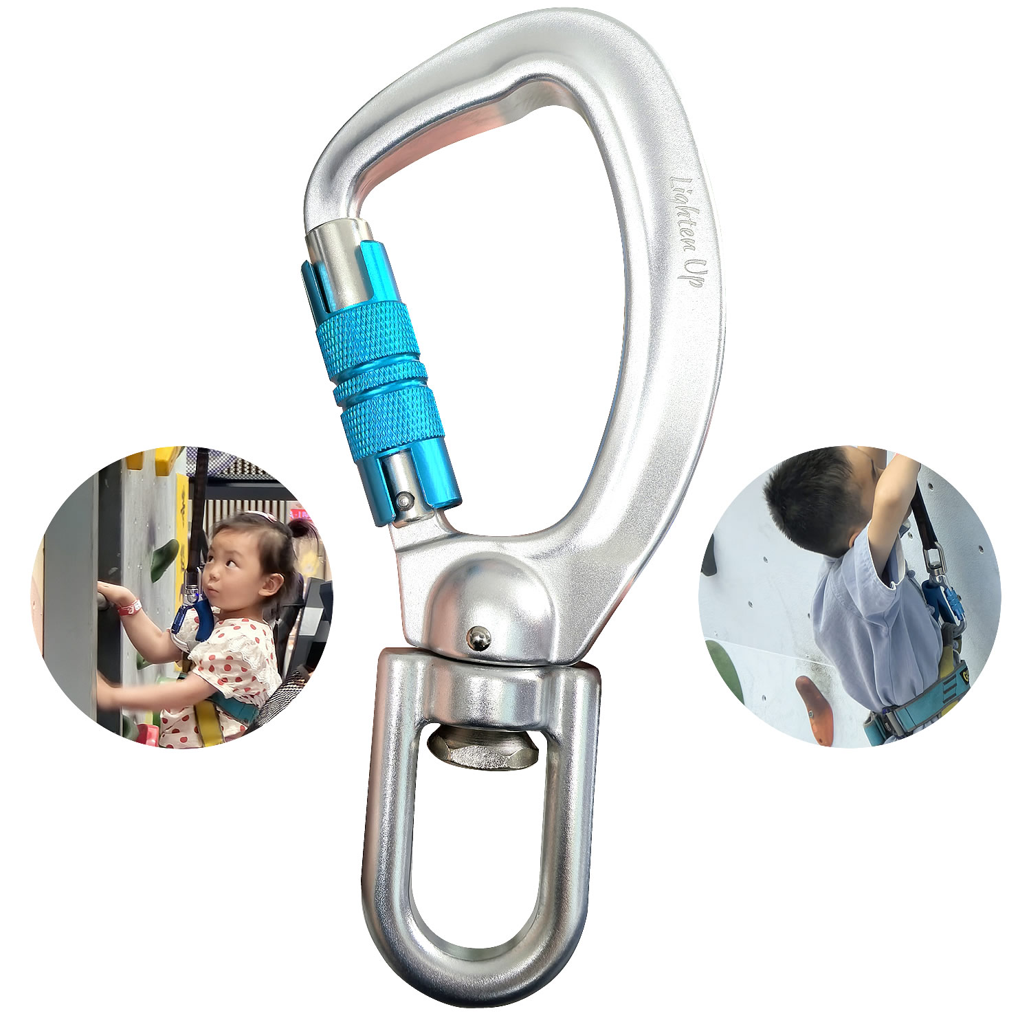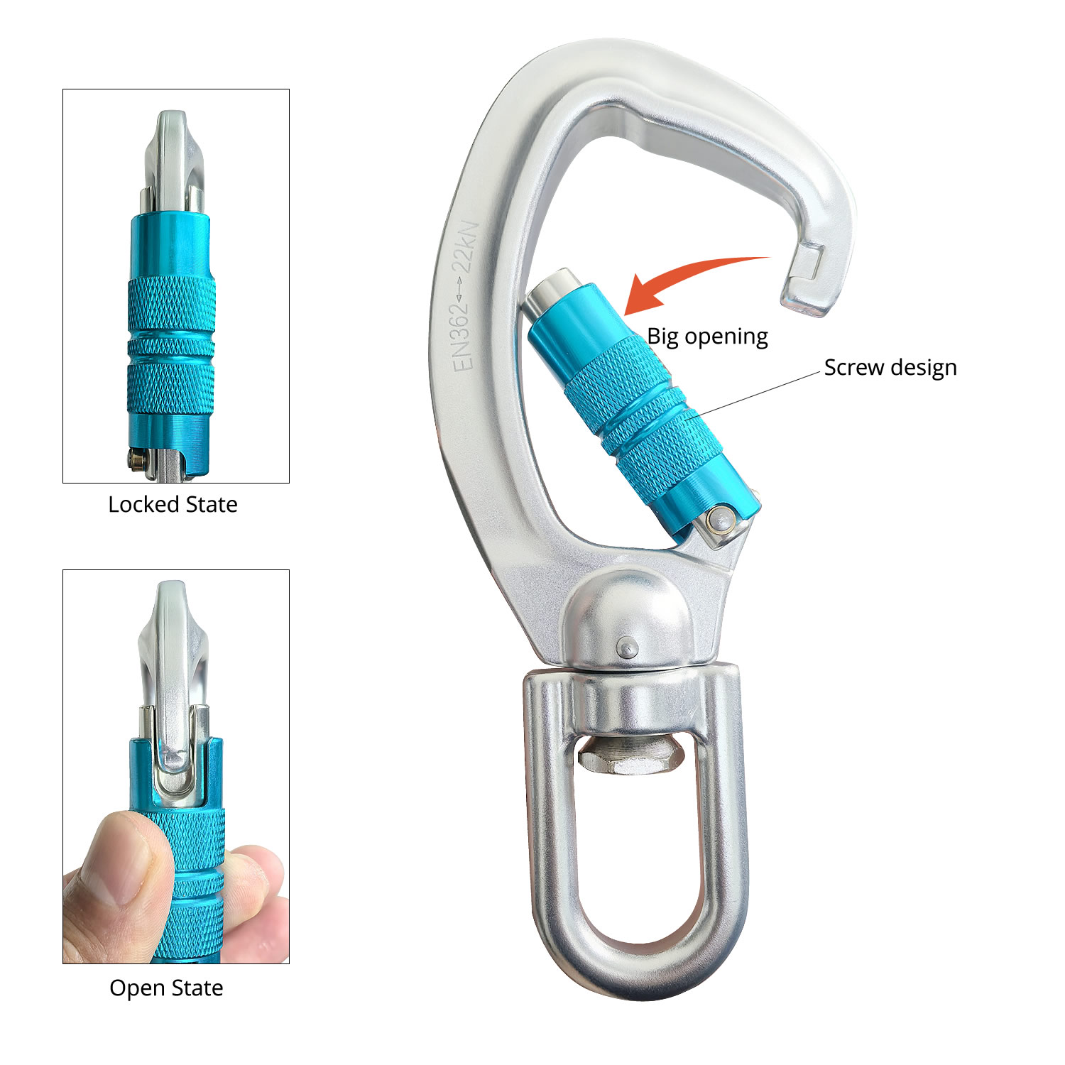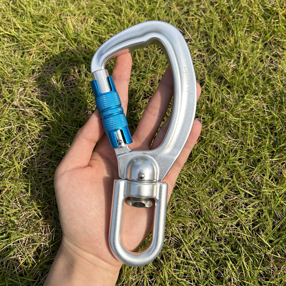 Crafted from high-strength aluminum alloy, this carabiner is both lightweight and robust, making it ideal for outdoor rock climbing, indoor gym use, hiking, and survival rescue missions. Its smooth 360° rotation allows for easy maneuverability, reducing friction and wear on ropes and equipment. The locking gate mechanism provides an extra layer of security, preventing accidental openings even under heavy loads.