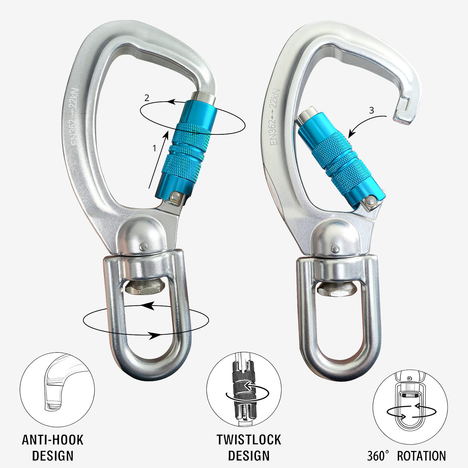 Lighten Up 22kN Swivel Carabiner Clip for Climbing - 360° Rotatable Carabiner with Locking Gate, Durable Aluminum Alloy for Outdoor/Indoor Rock Climbing, Hiking, and Survival Rescue