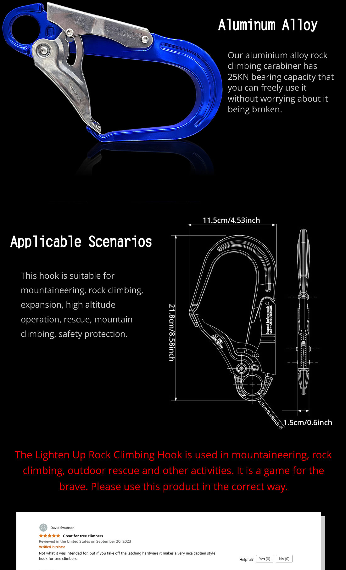 - Don't compromise on safety! Our 25KN carabiner hook is crafted from high-strength aluminum alloy, offering superior durability & peace of mind for all your outdoor pursuits.