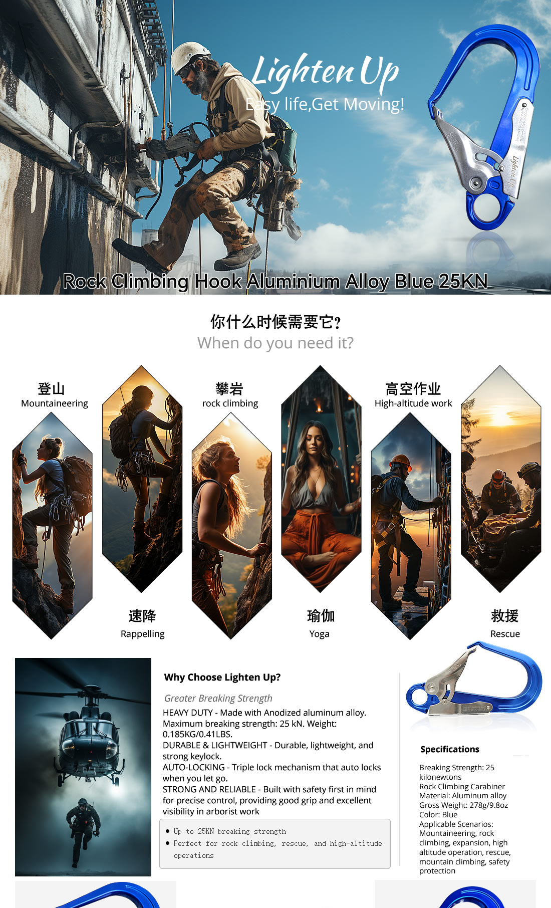 - Demanding adventures demand reliable gear. This 25KN aviation aluminum carabiner is your ultimate safety partner for rock climbing, via ferrata & work at height.