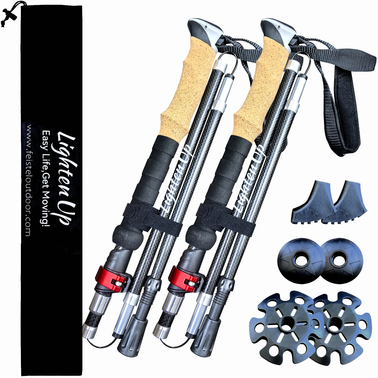 Lighten Up Carbon Fiber Trekking Poles with Cork Handles are designed to elevate your hiking and backpacking experience. Built with premium carbon fiber, these trekking poles are exceptionally lightweight yet incredibly strong, offering the perfect balance of durability and portability. Whether you're navigating rocky mountain trails, steep inclines, or uneven terrain, these poles provide unmatched stability and support, reducing strain on your knees and joints.