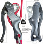 The Lighten Up Climbing Descender is a high-performance abseiling tool designed for safe and smooth rappelling. Made from hot-forged aluminium alloy and stainless steel, it combines high strength, lightweight (430g/0.95lbs), and portability. Measuring 20x8x2.5cm (7.87x3.15x0.98in), it’s compact yet robust, supporting 130kg with 9mm ropes and 200kg with 10-12mm ropes.
