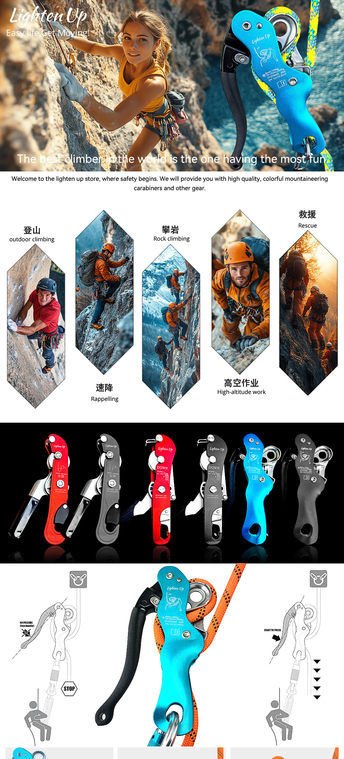 Lighten Up Professional Outdoor Rock Climbing Descender - STOP Handle-Control Abseiling Device for Safe Rappelling & Mountaineering