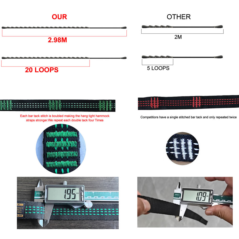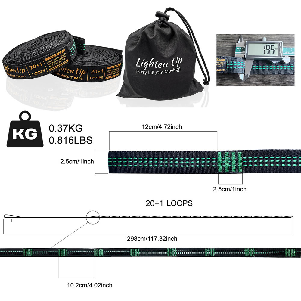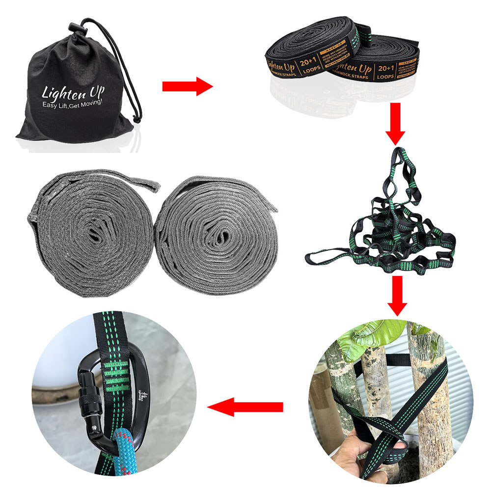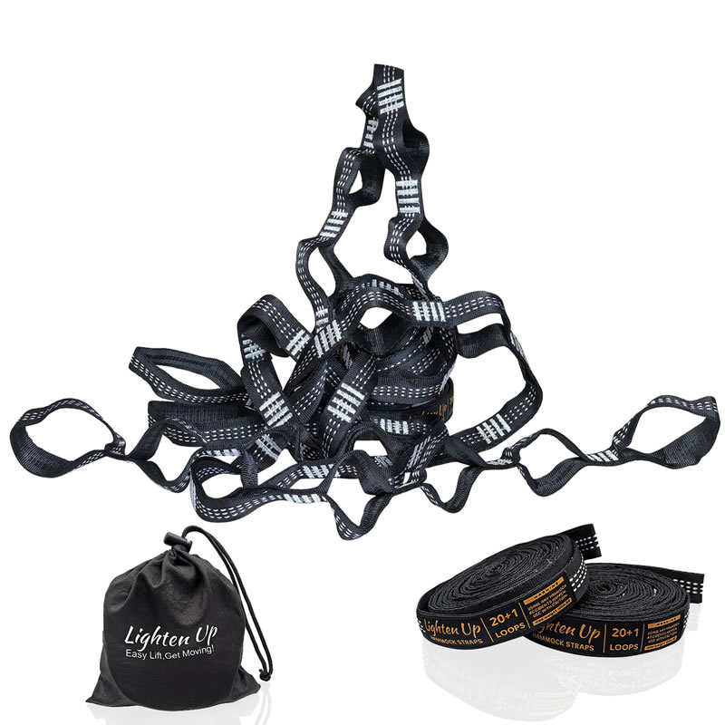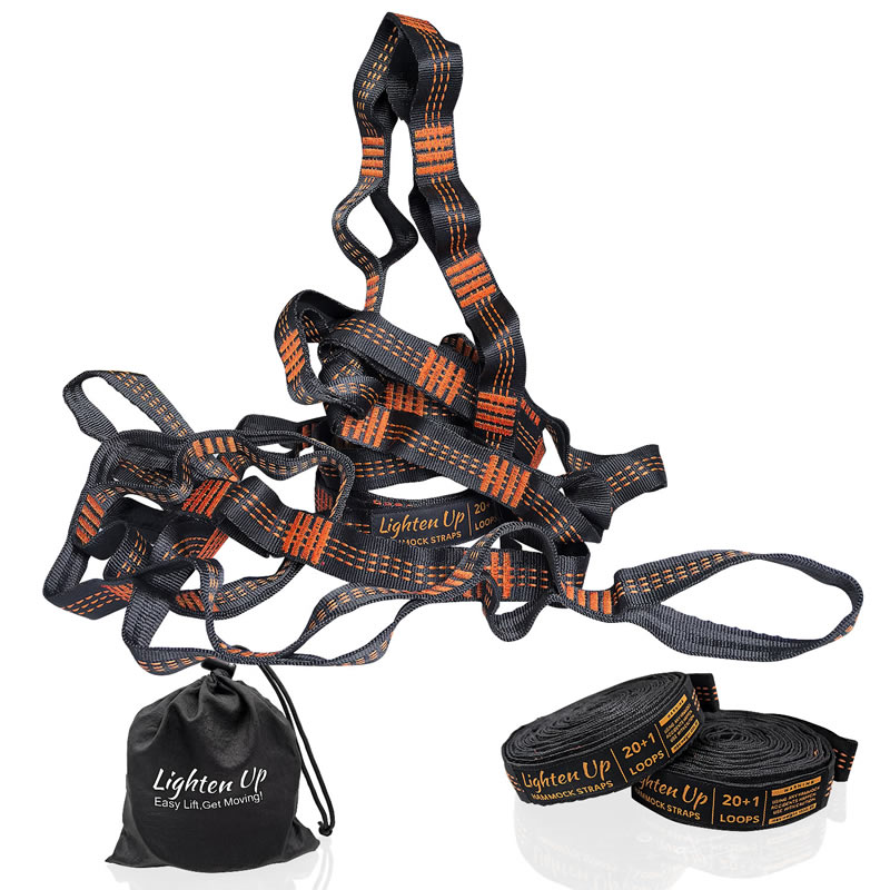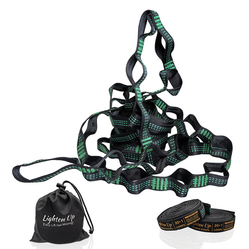 ✔ Specifications & What's Included - Each strap measures 10 ft (20 ft total) with a 1-inch width for greater friction and tree protection. Featuring 20 adjustable loops (40 in total), they come with an instruction card and a storage bag. Compatible with all hammock gear. (Carabiners sold separately.)